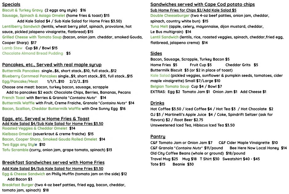 Old City Coffee, Merzbacher's Bakery, Le Bus Bakery, Baked Goods by La Mama, and our South Philly neighbors: Giordano's Produce, Molly's Books & Records (we sell cookbooks!), Bee Here Now Honey, and Philly Jerk.